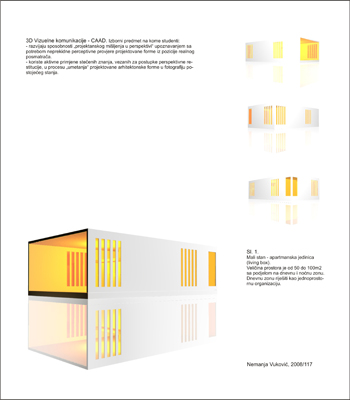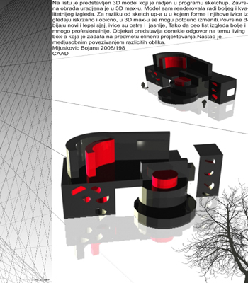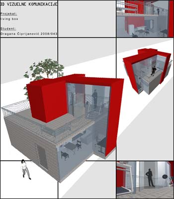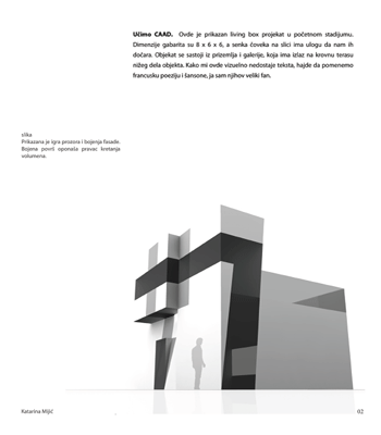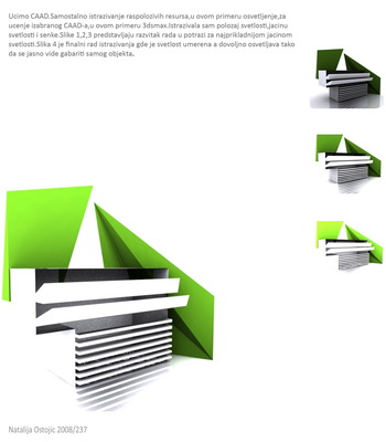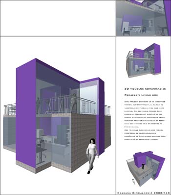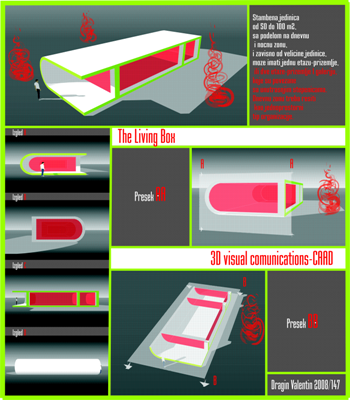 Tijana, ako imas vremena, uradi isti ovaj list samo sa cistom belom pozadinom. Stekla sam utisak da ovaj grid u pozadini nekako "gusi" model i ne izbacuje ga u prvi plan. Ako ovaj raster ima neku konceptualnu pricu, ipak bih pokusala da ga jos malo posvetlim, cisto da se nazire...kako bi model bio taj koji je dominantan. Toliko...inace fino! :)