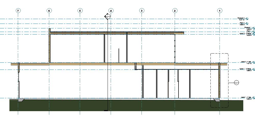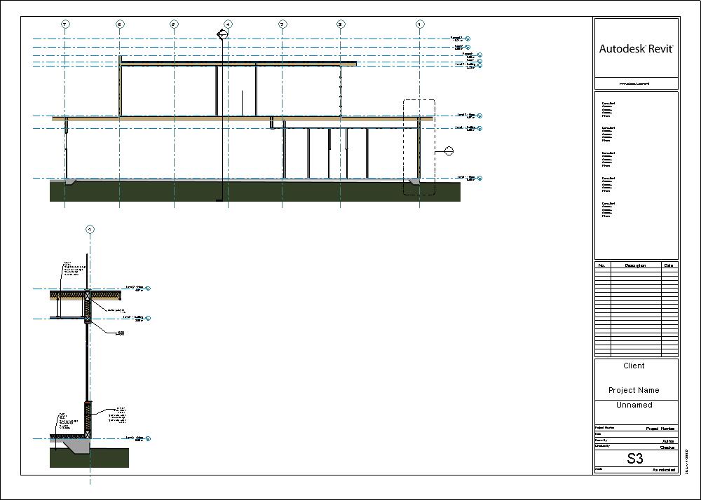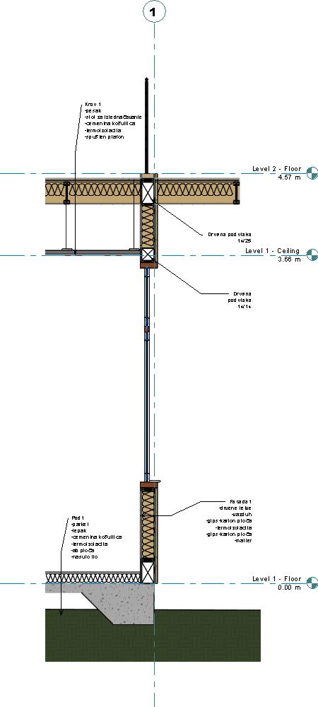 Izdvajanje dela preseka kuce pomocu opcije callout. Dodavanje tacnih dimenzija slojeva poda, postavljanje odredjene zid zavese, dodavanje spustenog plafona, temelja, poda na tlu i resenje odlivanja vode.