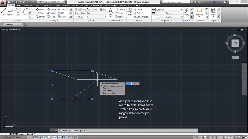 Na petoj fotografiji kotiranje je urađeno pomoću opcije ANGULAR, koja omogućava kotiranje ugla.