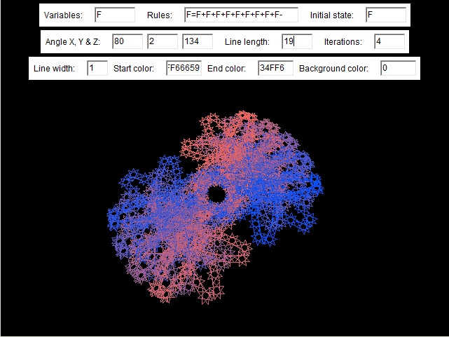 Angle, X,Y,Z: 30, 45,70 Line length: 70 Iterations:4
